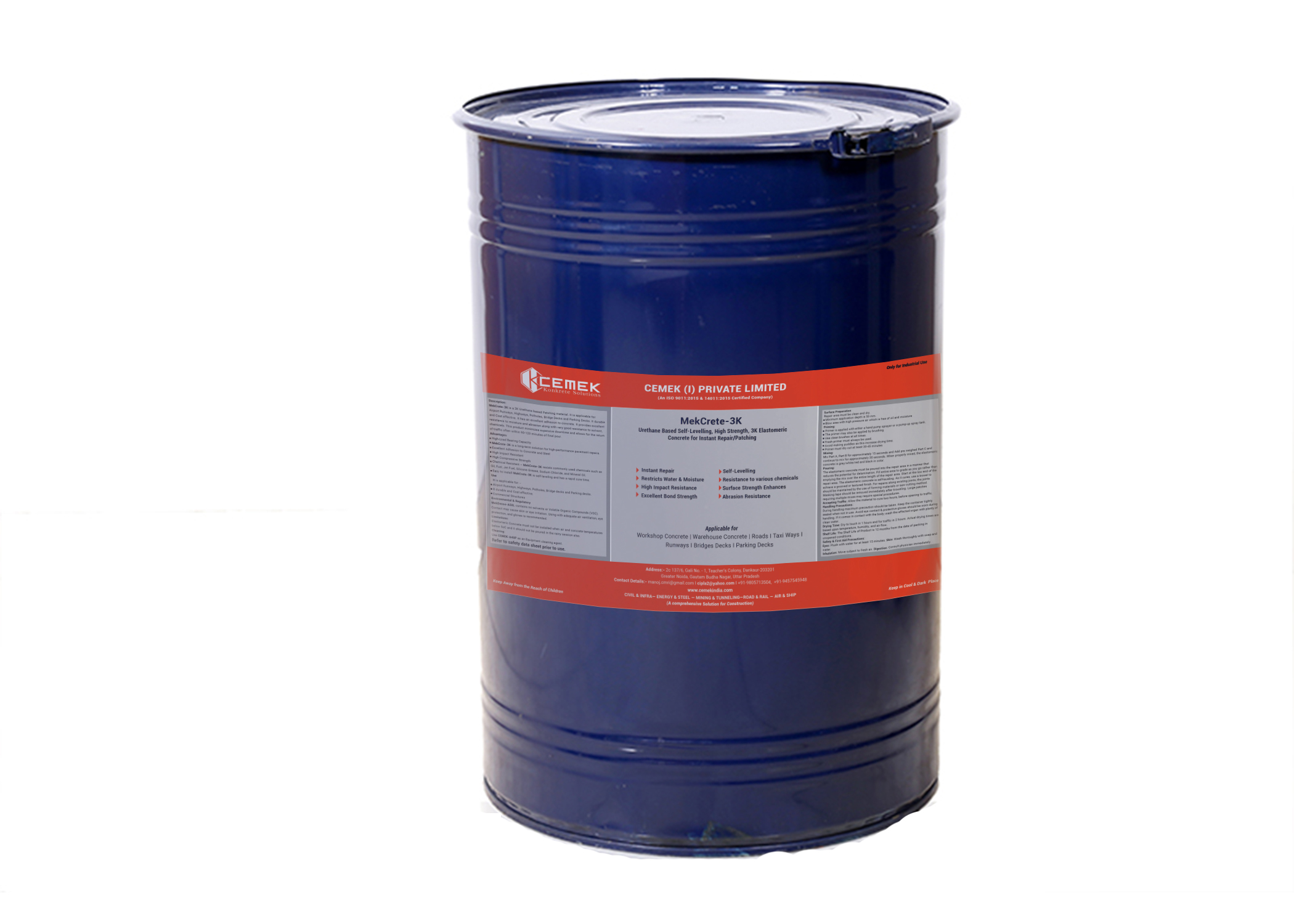 MekCrete-3K is a 3K Urethane based Patching material. It is applicable for Airport Runways, Highways, Potholes, Bridge Decks and Parking Decks. It durable and Cost effective. It has an excellent adhesion to concrete. It provides excellent resistance to moisture and abrasion along with very good resistance to solvent, chemicals. This product minimizes expensive downtime and allows for the return of traffic often within 90-120 minutes of final pour.